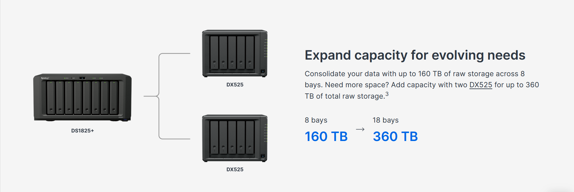 Up to 360 TB of raw storage with expansion unit2,3
